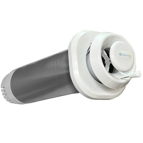 Рекуператор Climtec 150 База виводить із приміщення відпрацьоване повітря через алюмінієвий теплообмінник і одночасно наповнює його свіжим з вулиці. Потоки повітря при цьому не перемішуються, а рухаються у різних каналах теплообмінника. Перевагою саме алюмінієвого теплообмінника є його стійкість до окислення.